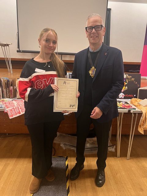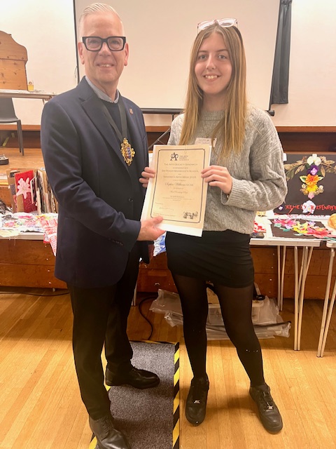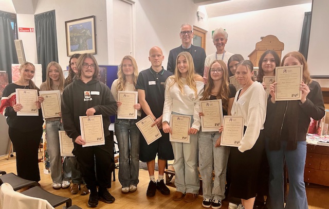 Monday’s event was a celebration of that talent. Mayor Csuka addressed the students and a record audience before presenting each young artist with a certificate and award, followed by a photo opportunity. Their artworks were displayed prominently at the front of the hall, where attendees could admire them before and after the Society’s lecture.