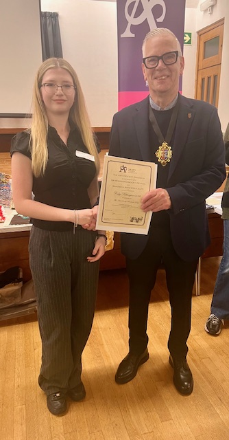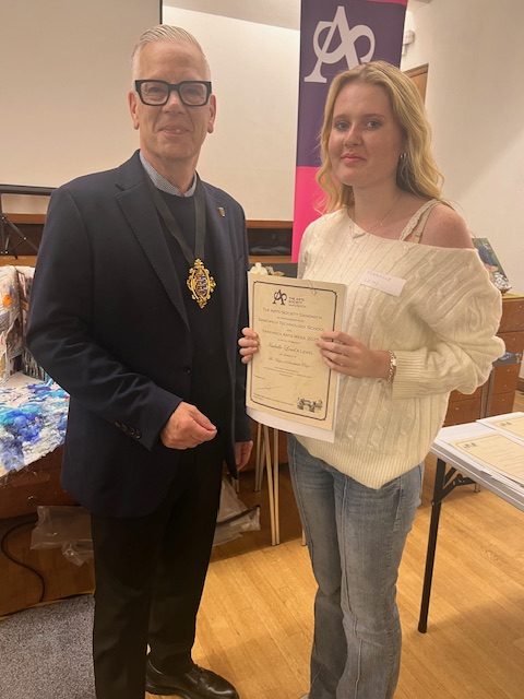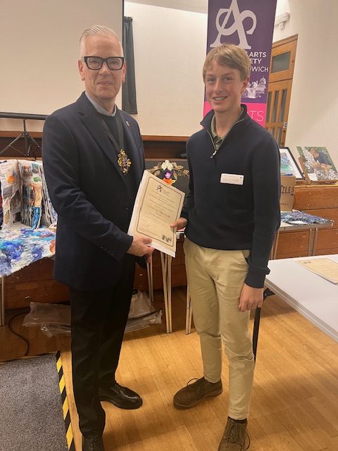 On Monday, 6th October, the Delf Room at the Guildhall in Sandwich was abuzz with creativity and pride as local young artists gathered with their families, friends, and members of The Arts Society Sandwich. The occasion was the Society’s annual awards presentation, honouring exceptional GCSE and A-level art students from Sir Roger Manwood’s School and Sandwich Technology School.