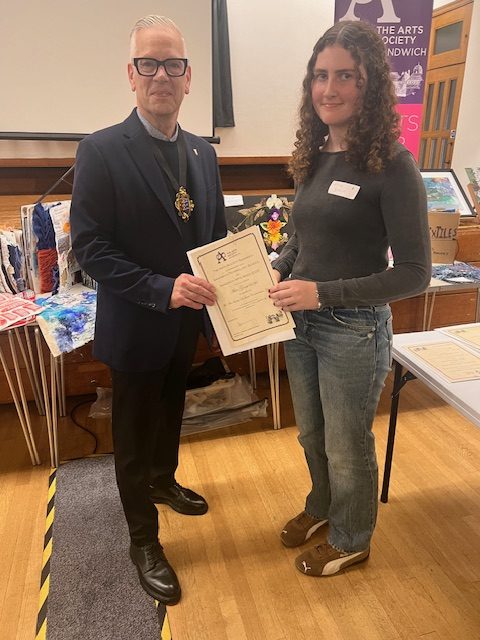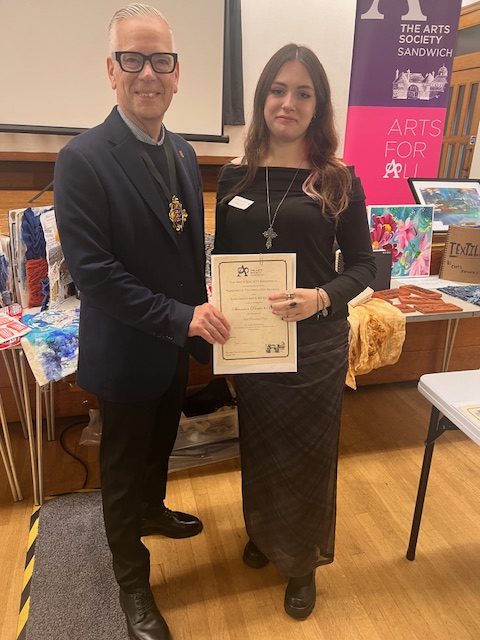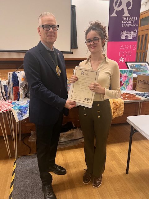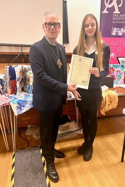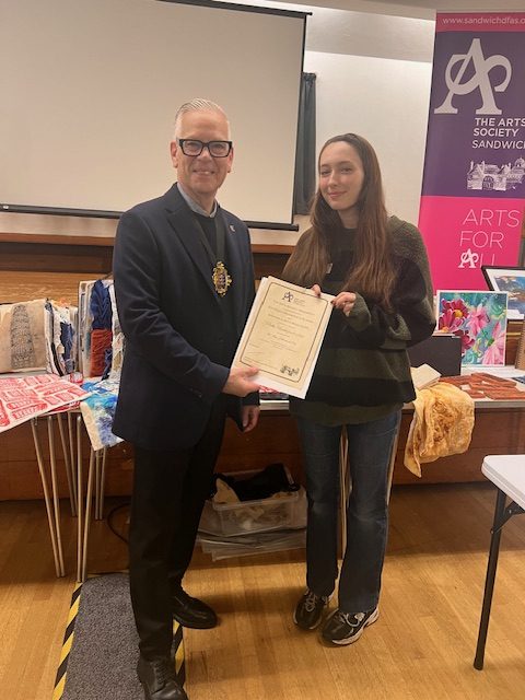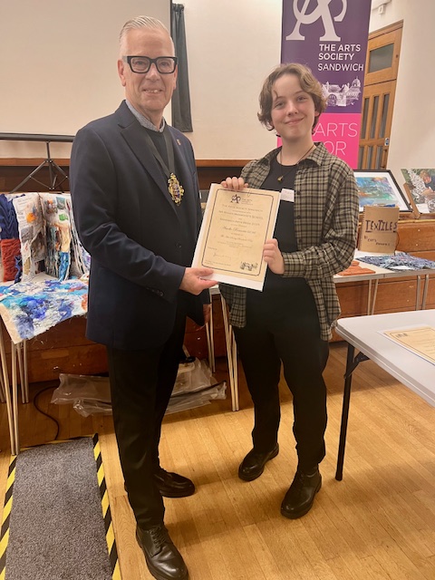 The awards follow a careful selection process that took place in July. A small team from The Arts Society Sandwich, joined by the Right Worshipful the Mayor of Sandwich, Councillor Emmet Csuka, faced the challenging task of choosing prizewinners from an impressive body of student work. The standard was, as always, remarkably high—proof of the extraordinary talent among 15 and 18 year-olds in our community.